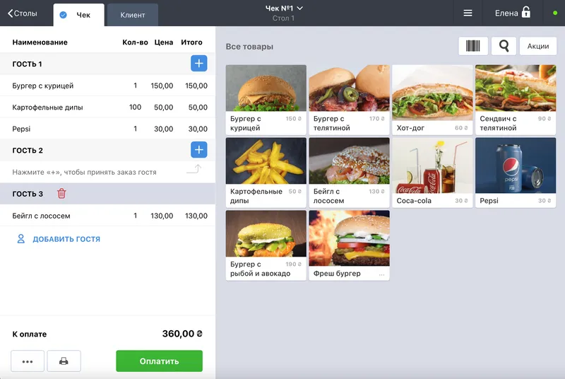 Удобная касса для фаст фуда