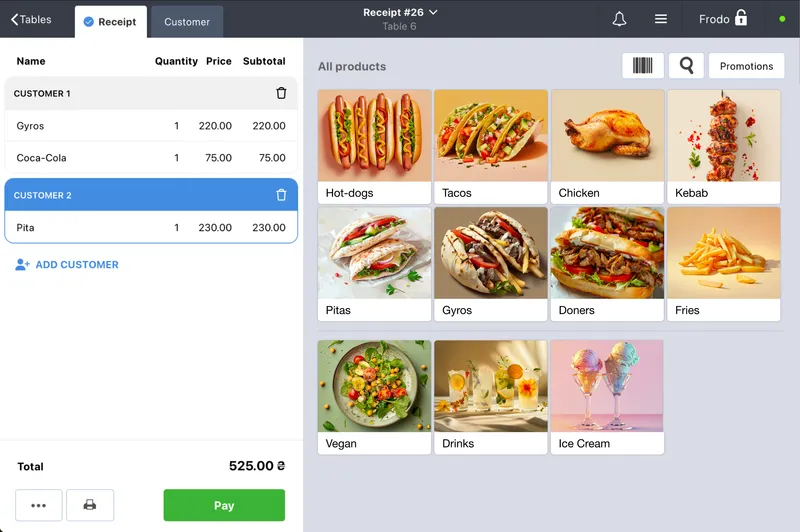 Simple interface helps your staff to take orders in just a few clicks and send them straight to the kitchen! Even if your location is extremely busy.