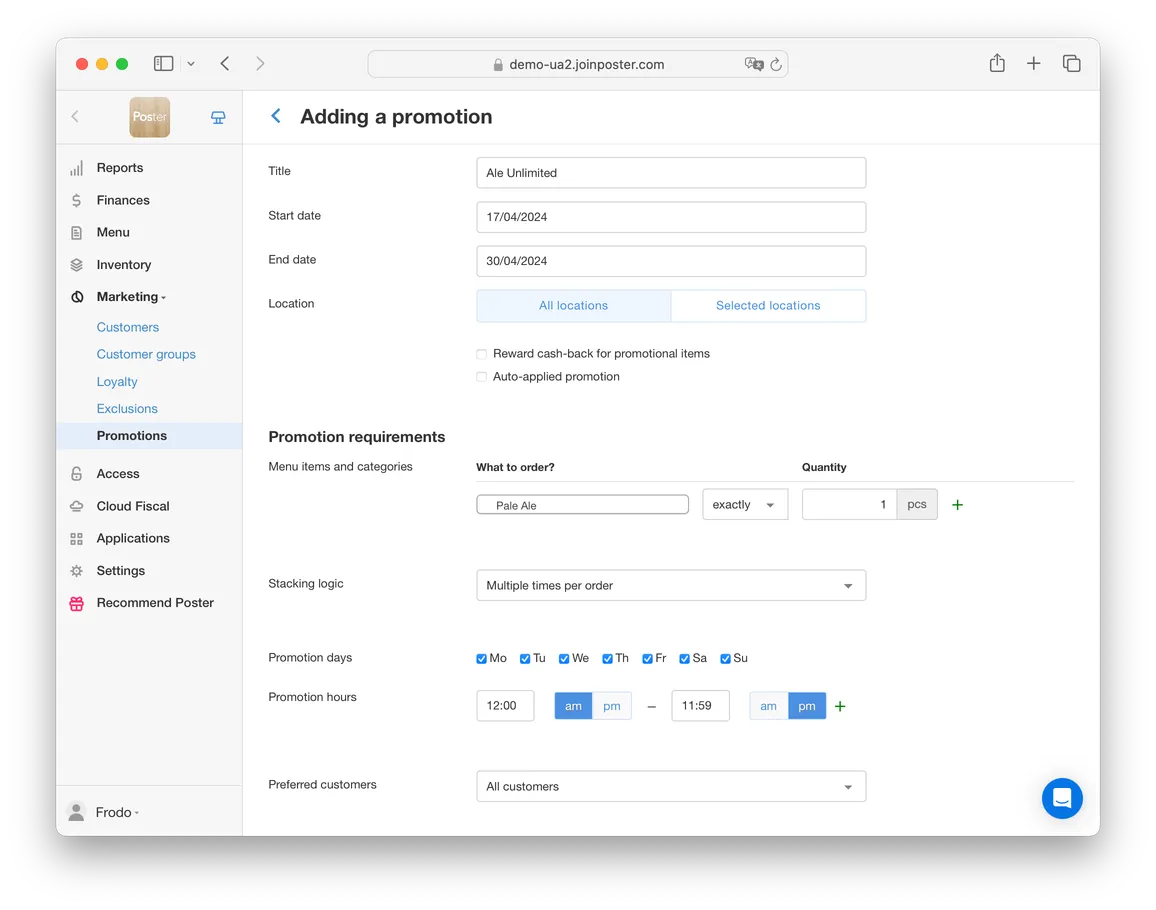 The price varies based on your location size, the number of staff, food & drink menu, and the specific features required for your operations. Explore Poster’s pricing plans to select the option that suits your needs.