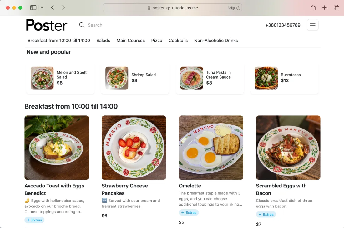 Create a contactless QR menu for your restaurant or cafe with Poster QR. Easy online menu just a QR code away.