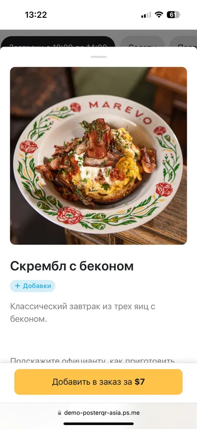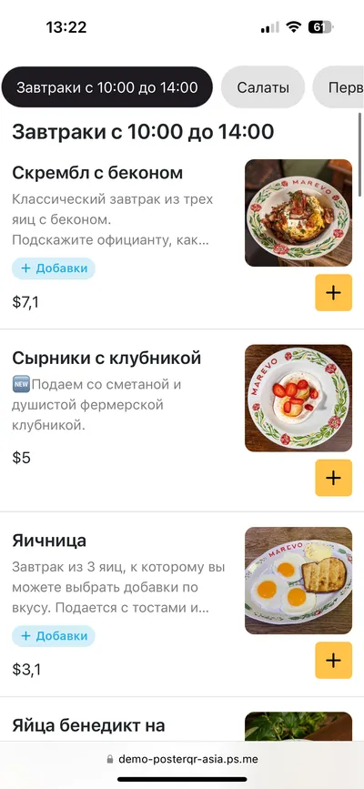 Настройте, какие товары из вашего меню отображать на сайте, добавляйте к ним описание или измените стоимость.