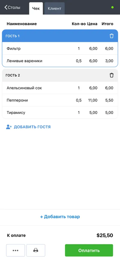 - Мгновенно принимайте заказы у столов
