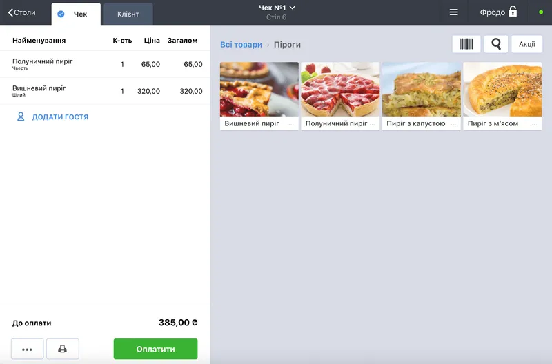 - хмарна каса на планшеті чи телефоні