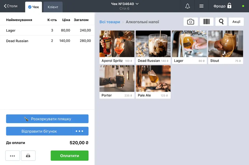 Автоматизація бару на планшеті
