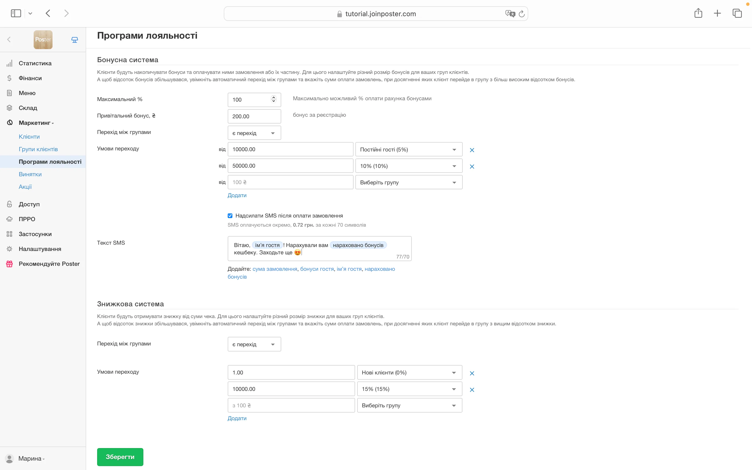 Налаштуйте бонусну чи знижкову систему